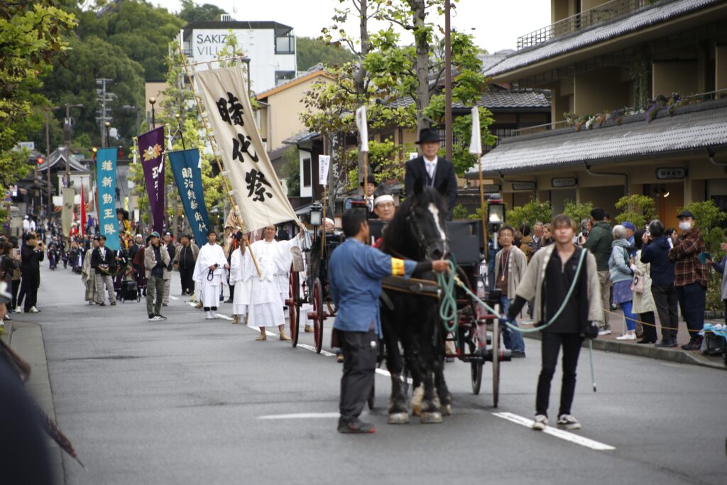 3. 短期コース 2025.10.25 2025年秋期 校外学習③「時代祭り」 今期、3回目の校外学習(10月22日)は、時代祭りを見学しました。 まずは地下鉄で東山まで向かいます。 東山駅から平安神宮まで行きます! 到着したら、前を通るまでみんなで待ちます! 始まりました(^^)/ 迫力がありますね(*^▽^*) みんなで楽しく見学できました! 京都三大祭りの一つである時代祭りをみて、日本の伝統に興味がわいたのではないでしょうか? 前へ一覧に戻る