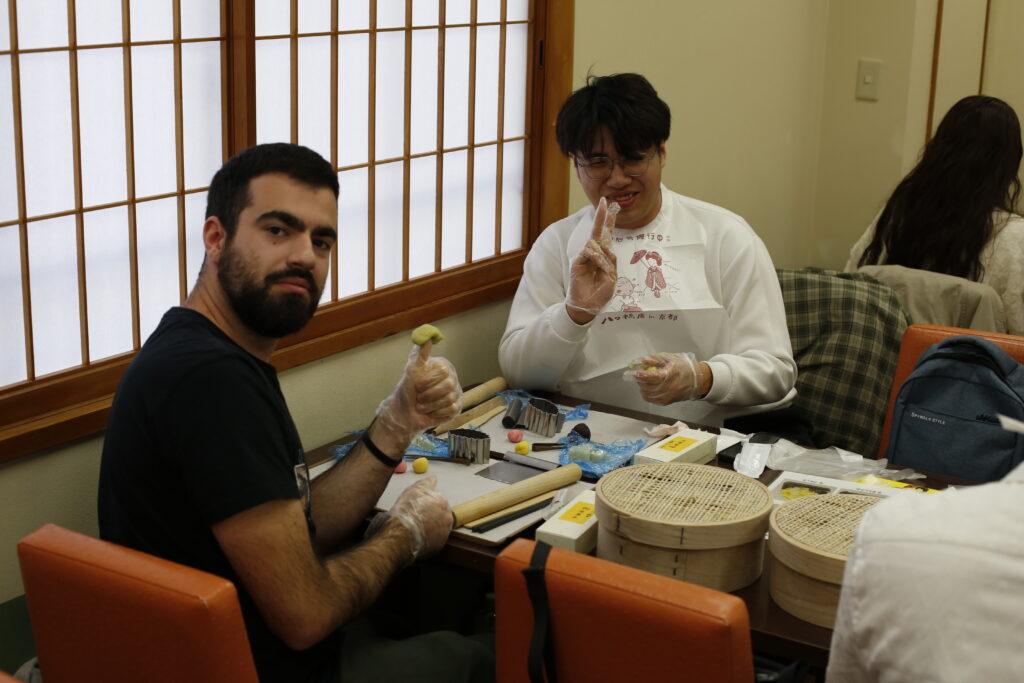 3. 短期コース 2025.12.17 2025年秋期 校外学習⑨「和菓子作り体験」 今期、9回目の校外学習(12月5日)は、和菓子作り体験をしました。 今回はねりきり細工を2グループに分かれての体験でした! 生地に色をつけて丸めていきます(^^)/ きれいな丸ですね( *´艸`) 次にねりきり細工をしていきます!ハサミで切り目を入れて行きます! 別の形にも挑戦です! 完成です(^^)/ みんなで楽しく和菓子を作りました! 前へ一覧に戻る前へ
